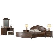 Да Винчи орех Спальня 03. Цвет - орех. В данной комплектации спальня состоит из кровати 1800 с двумя прикроватными тумбочками. стола туалетного с зеркалом и пуфом. Спальное место 1800х2000 мм. Основание ортопедическое и матрас приобретаются отдельно. Изящный стиль мебели и филигранность исполнения мельчайших деталей декора. усилены респектабельным цветом теплого ореха и «антикварной» патиной.