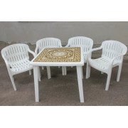 Описание товара «Комплект стол квадратный Греческий орнамент + кресло Летнее белый»