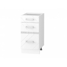 Белая глянцевая кухня отличается совершенно особенным лоском, делает помещение эффектным, стильным и визуально расширяет его границы. Привычная строгая геометрия кухонного фасада дополнена нежным 3D-декором в серебре. Кухня «Бьянка» – это воплощение чистоты и элегантности в Вашем доме.