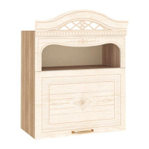 Древесная текстура и декоративные розетки на фасадах делают кухню необыкновенной и приковывают к ней взгляд. Витрины с дизайнерским рисунком на стекле и ажурные элементы в радиусных карнизах делают кухню визуально легкой и изящной. Рисунок патиной и кристаллы Swarovski® под жемчуг являются изюминкой кухни и придают ей благородство и особенный шарм.