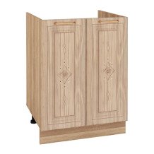 Древесная текстура и декоративные розетки на фасадах делают кухню необыкновенной и приковывают к ней взгляд. Витрины с дизайнерским рисунком на стекле и ажурные элементы в радиусных карнизах делают кухню визуально легкой и изящной. Рисунок патиной и кристаллы Swarovski® под жемчуг являются изюминкой кухни и придают ей благородство и особенный шарм.