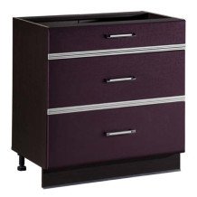 Серебристое тиснение и хромированные ручки с фиолетовыми вставками добавляют особую изюминку этой кухне.