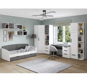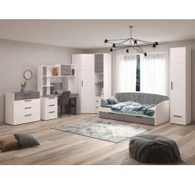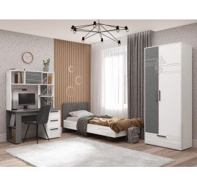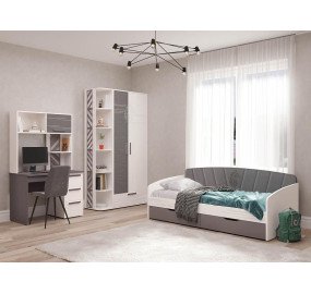 Смелая и яркая «Аляска» будет близка по духу подросткам, жаждущим выразить свободу своих мыслей и стремящихся к независимости. Особенность коллекции – это стильный контраст белого и серого цветов. Акценты на четких линиях, текстура фасадов в стиле «лофт» и динамичный рисунок подчеркивают индивидуальность своего обладателя. Благодаря высокой вариативности и универсальности модулей данной серии есть возможность обустроить удобную и эргономичную комнату. Универсальный дизайн подростковой «Аляска» подойдет как смелым парням, так и дерзким девчонкам